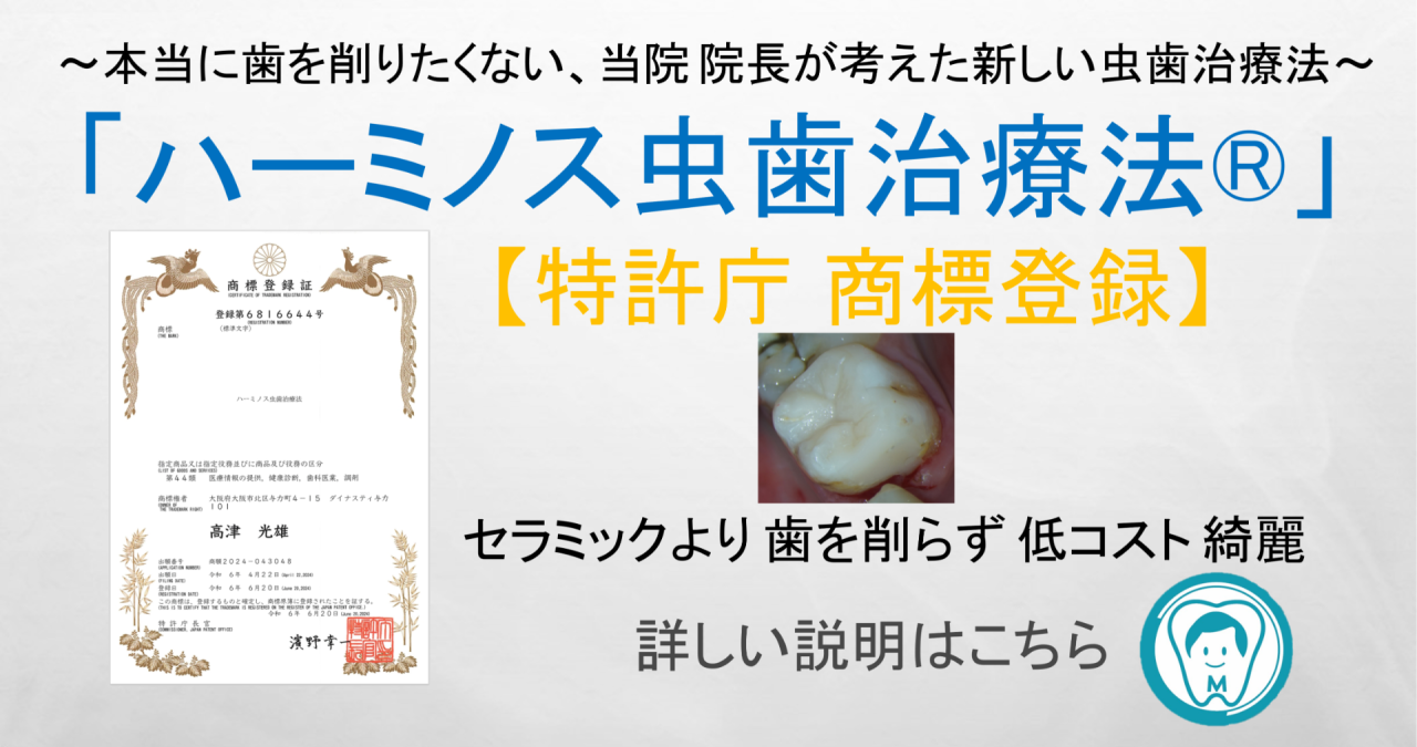当院院長の健康な歯をなるべく削らない虫歯治療「ハーミノス虫歯治療法®」が特許庁の商標登録を受けました