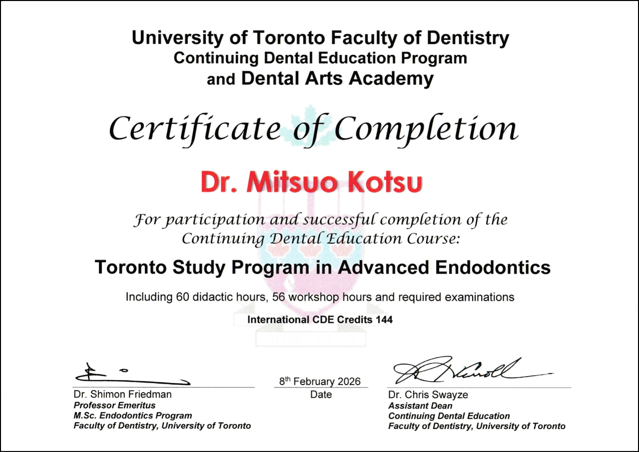 トロント大学スタディプログラムを修了・卒業しました|根管治療と神経保存治療の学び