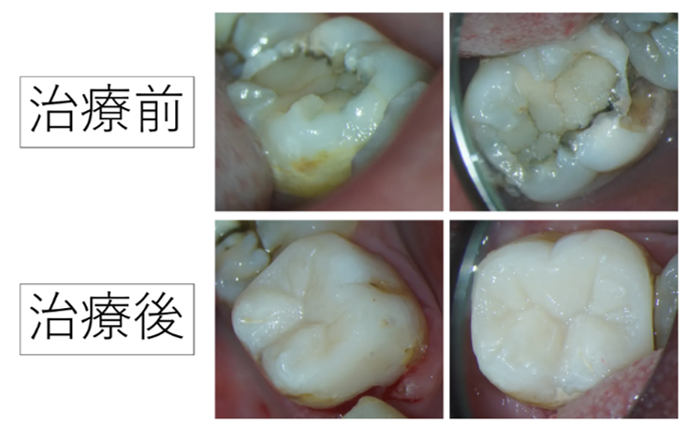 歯と歯の間の大きな虫歯。当院独自の治療法で高価なセラミックを回避した症例