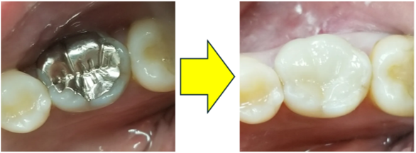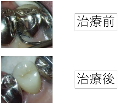 【銀歯は虫歯を作りやすい】銀歯で歯がかけて虫歯ができた奥歯を白いレジンで治療
