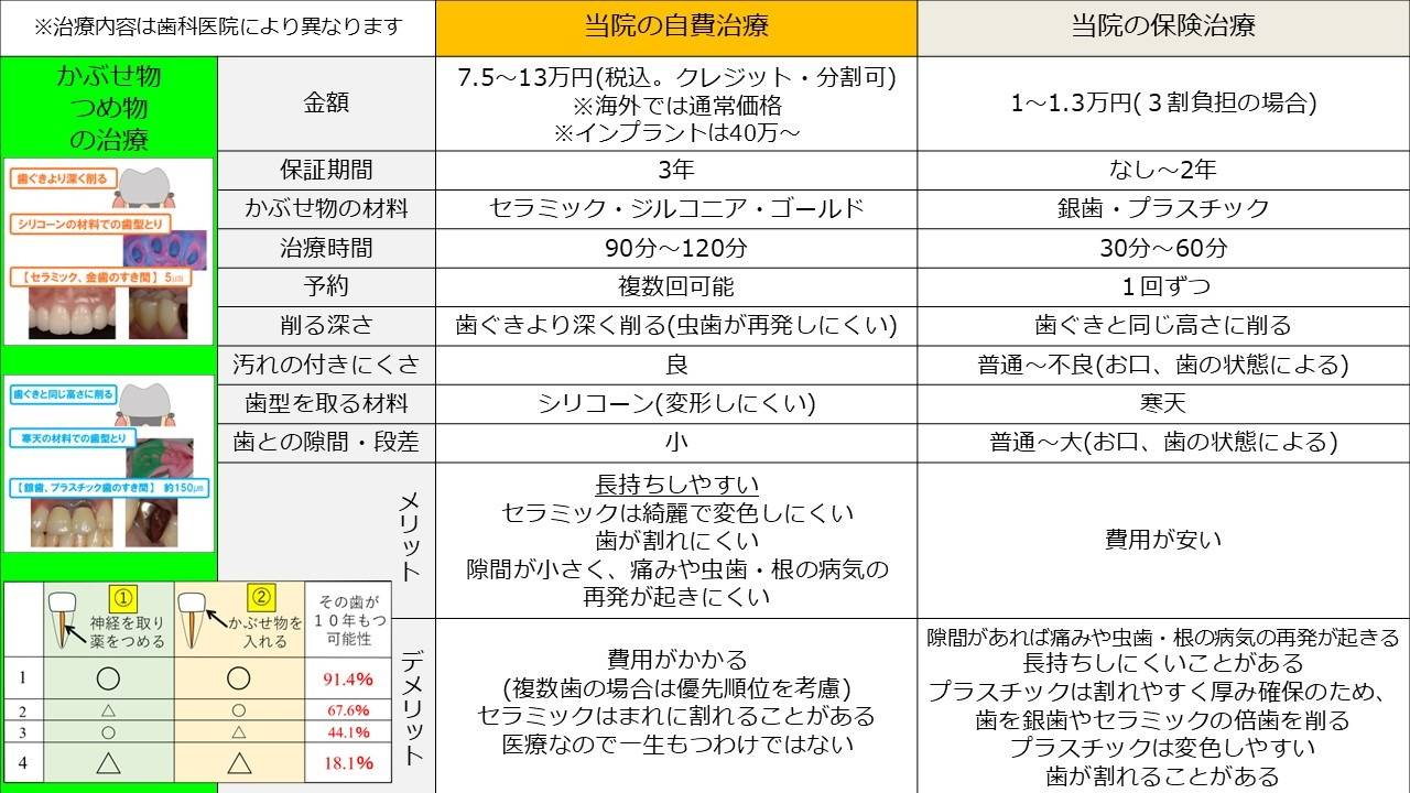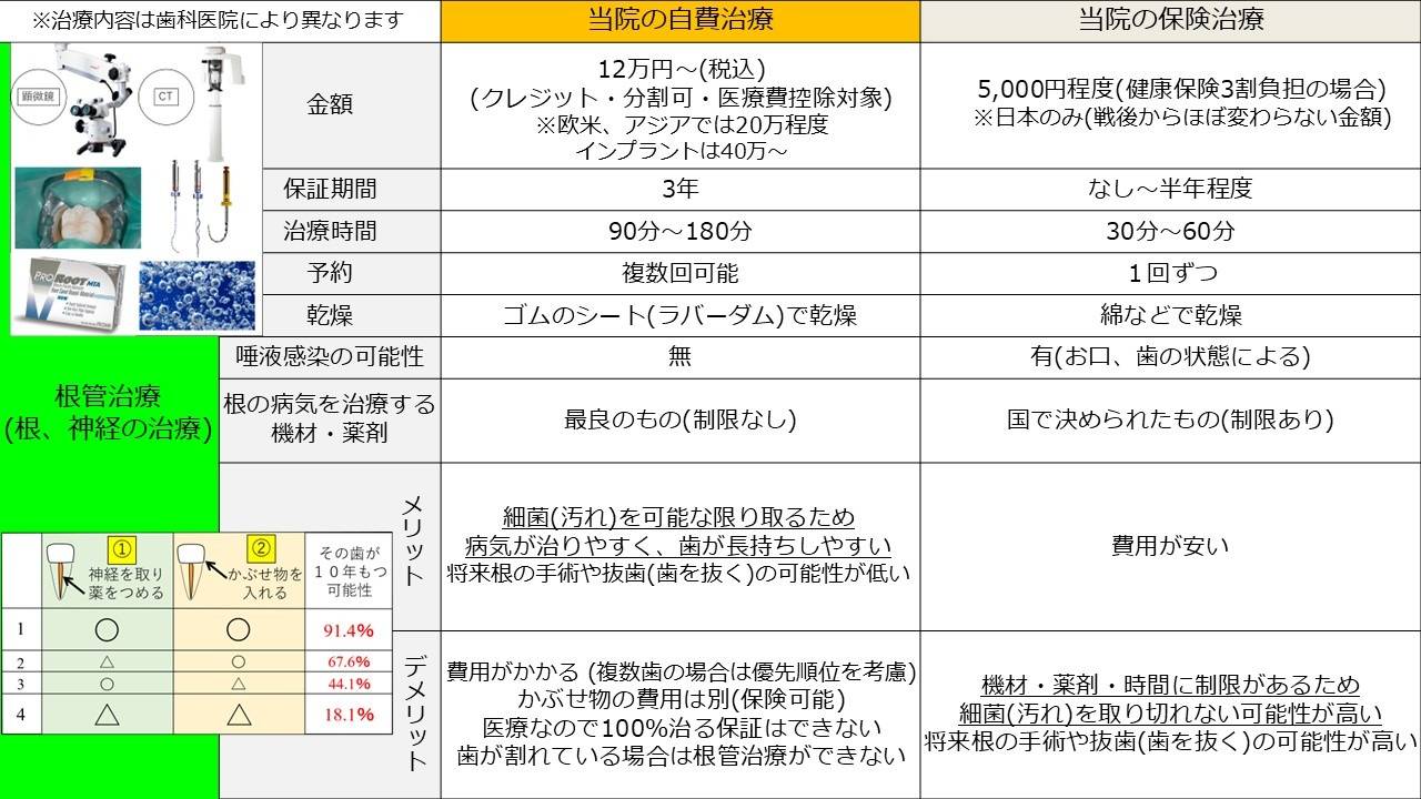 保険治療と自費治療の違いについて説明します。