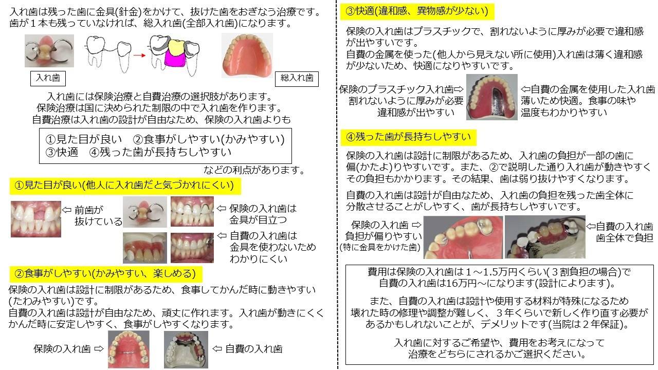 の説明をそれぞれ表2枚ずつにまとめております。(入れ歯は1枚)