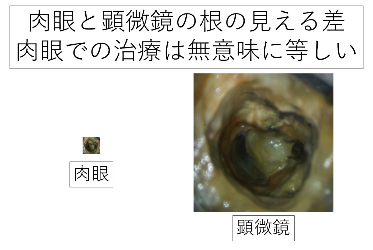 まず、レントゲンを見て予想できることは、以前の治療では顕微鏡(マイクロスコープ)や高倍率ルーペを使わずに肉眼もしくはそれに近い状態で治療したということです。