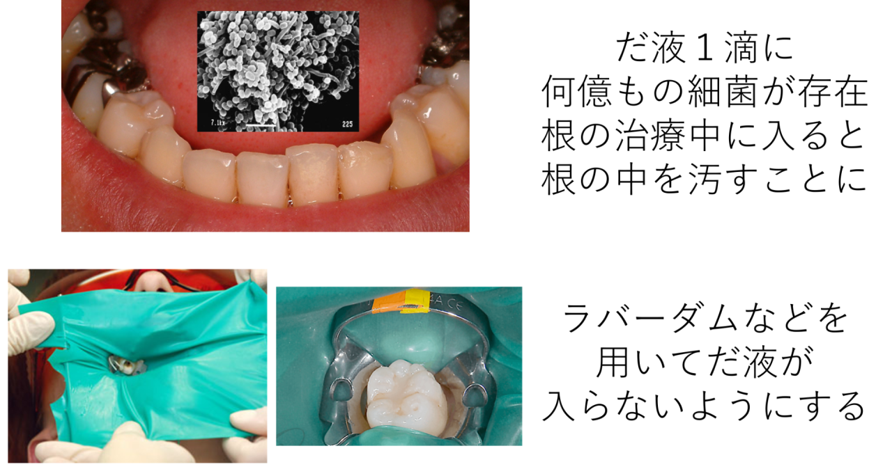 また、下の奥歯はとてもだ液が入りやすい環境です。だ液1滴に何億もの細菌が存在します。これも予想ですが、以前の治療中にだ液が入り、治療をしてきれいにするどころか、反対に根の中に細菌を入れてしまい汚してしまったのだろうと考えました。