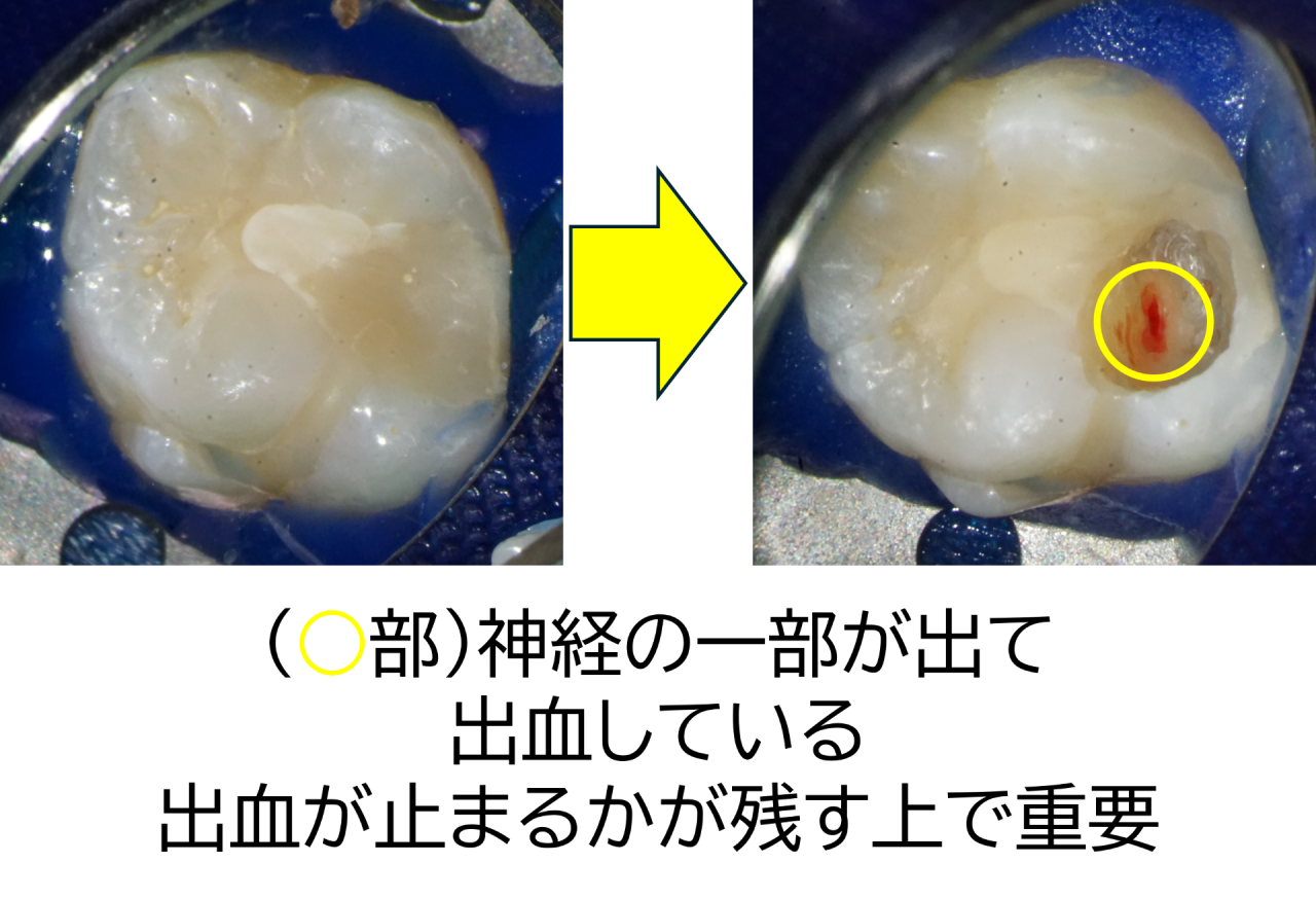 逆に何分待ってもドクドクと出血が続くようであれば炎症は大きく神経は残せないと判断します。
