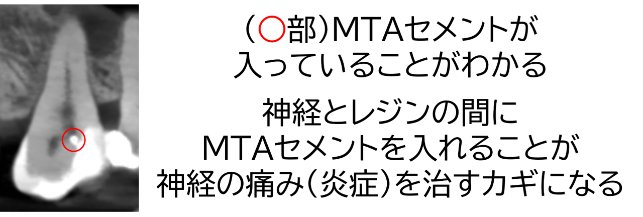 CTで確認したところ、予定通り一部の神経の所にMTAセメントが入りました。