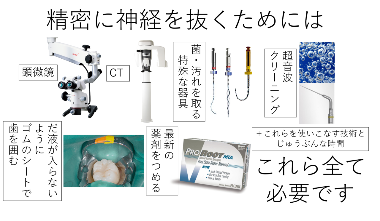 神経を残す治療は高い技術、感染しない環境、時間が必要です。それに見合うものではありません。
