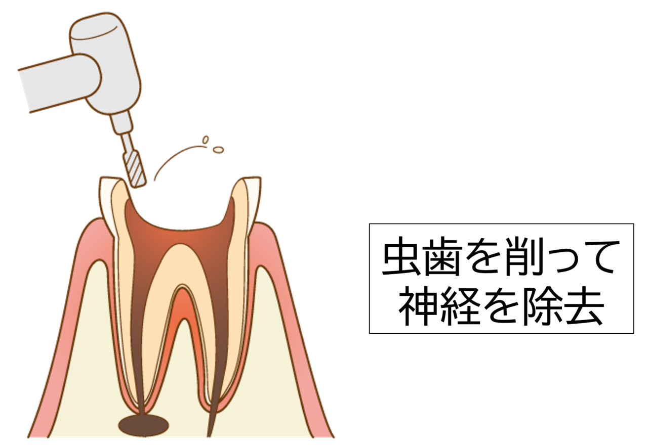 治療の流れ②虫歯部分の除去と神経の処置