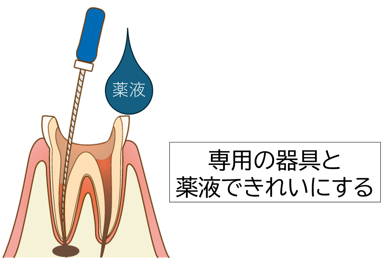 治療の流れ③根の中の洗浄と消毒