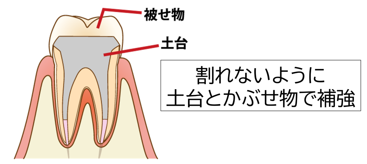 根管治療が終わった歯は、そのままでは割れやすくなっています。