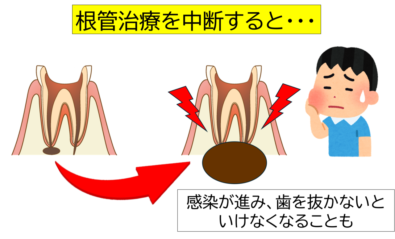 痛みが取れたからといって、治療を途中でやめてしまうと、根の中で問題が再発することもあります。