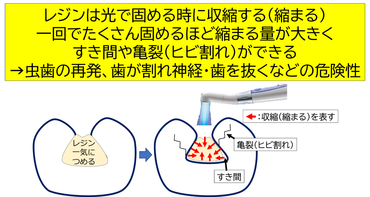 レジンは光を当てて固める際に、わずかに縮む性質があります(重合収縮といいます)。