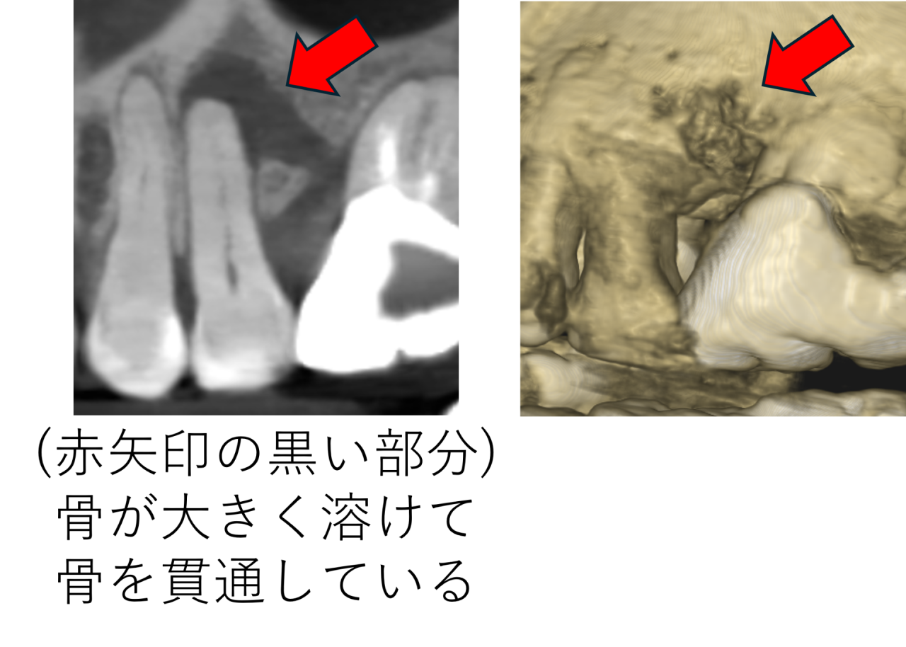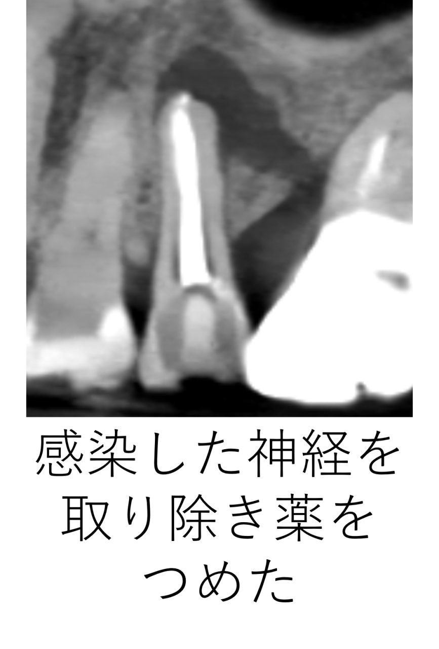 レントゲンでは、確かに根の先の骨が大きく減っていました。